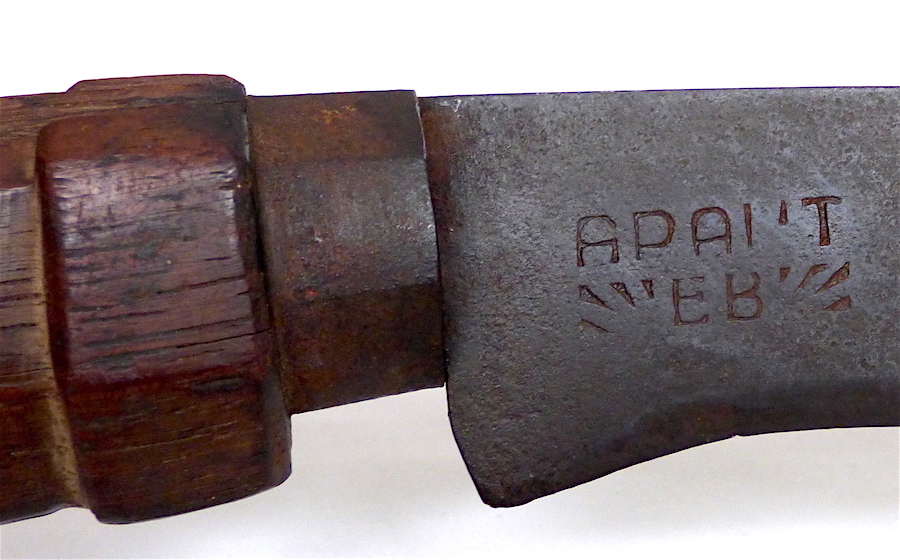 I personally would place this one a little bit more early, the good workmanship, the small aluminium(?) nails at the handle, the used wood (looks like a very nice grain) and the patination let me guess a birth around the 1930s but like always I could be wrong.