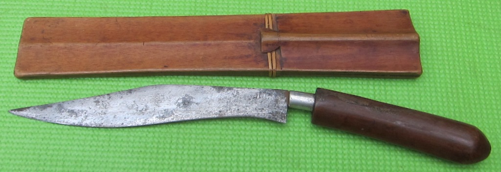 The absence of rattan bindings, or any binding for that matter, on the wooden scabbard would be unusual for a traditional Filipino knife of this size. I can't recall whether the other knife I owned had a scabbard that was glued or pinned together with small brads. Either way, not really typical Filipino work. The hilt and ferrule are unlike any Philippine knife I have seen. I should also mention that the hilt is not full tang, which would pretty much rule out Luzon.