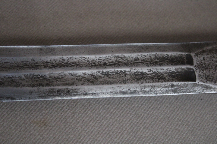 Merry christmas and a better and hopefull year for 2021. I've just got my second kaskara. the sword is 94,5 cm long, blade 83 cm, wide 3,8 cm, thickness at the ricasso 5,5 mm. A well made blade with 2 fullers. Inside the fullers a floral decoration, blade has some flex. On the ricasso markings on each side. On one side two markings, A lion and a cartouch, 6 gm 126, both deep and clear. On the other side two hands. The handle is cast on the sword, problaby aluminium or zinc. The lion i've seen before, but the cartouche and the hands not. According the seller it is a local made blade and the markings and the floral decoration resembling european blades. Comments are verry welcome. Marc |