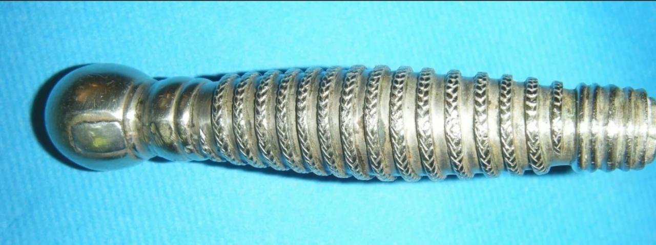 I have recently purchased a knife that was sold as a cut down sword. I do not deny this but I have questions about what kind of sword it possibly could have been. The blade appears to have been made from one sword and the hilt recycled from another. These are the seller's pics because I do not have the knife yet. Thanks for your comments |