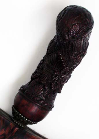 Cirebon hilts have several varieties in form. Older hilts -- influenced by their ancestor of Hindhu Pajajaran Kingdom -- with figural hilts of raksasa or buta bajang motifs, wayang, and ganesha motifs. And and the younger Cirebon/Tegal hilts in ornamental form.