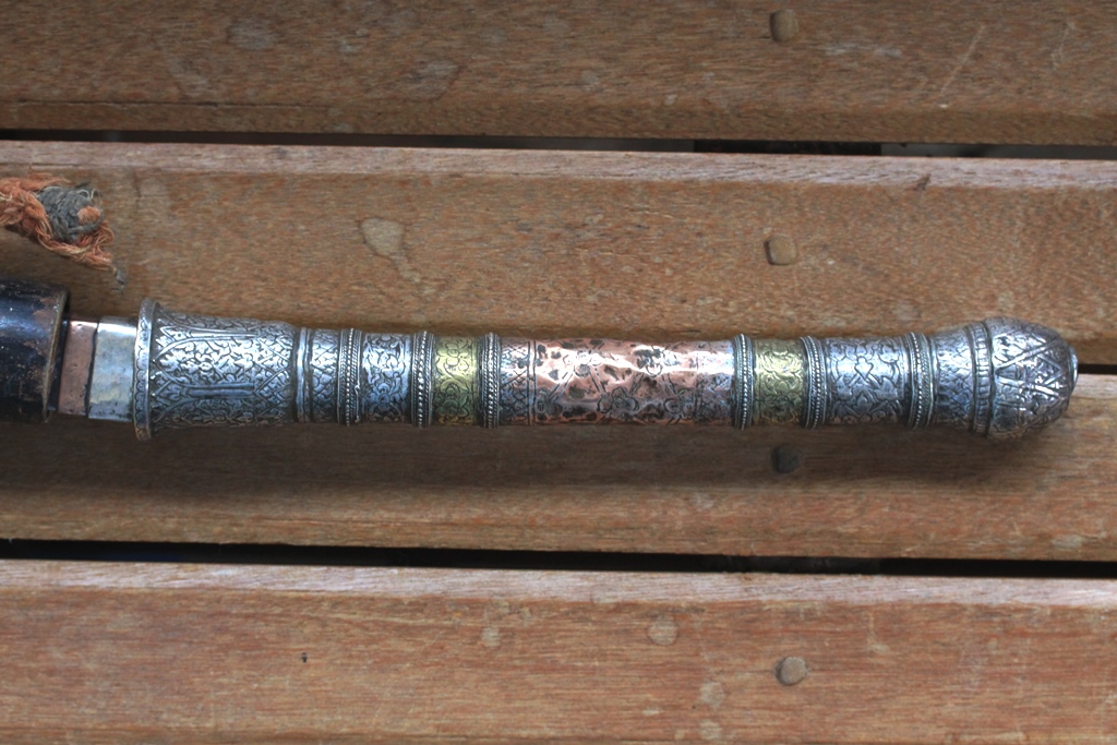 I'm just coming to this thread after traveling in Australia the last three weeks. Two very nice Northern Thai/Yunnan daab. Of the two, the first is by far the more interesting and older. As noted in Andrew's second post, it is from the early Rattanakosin period with features harking back to an earlier Ayutthaya style. These are uncommon swords to find and as a result can be fairly pricey. The habaki-like feature is interesting and again uncommon to find on Thai daab. It likely reflects a minor Japanese presence in Thailand in the 18th and 19th C, with copying of katana elements into the local daab style. The influence of Japanese sword making can also be seen in higher quality pieces made in the 19th C--many of the "royal" daab made in the 19th C and found in Thai museums seem to have Japanese elements in their blade style and hilts. The second one is of somewhat later manufacture, and daab are still being made in this style. I think it is most likely of Husa manufacture (from southern Yunnan adjacent to the Shan States of Myanmar). The Husa are identified with the Shan who are the major ethnic group in that area. Your second example is found among the Shan and Kachin peoples living in Myanmar (Burma), as well as those of Tai/Shan origin in northern Thailand. BTW, the sheath associated with your first example is a cheaply made 20th C example that does not befit this sword. I would not display such a fine sword with that sheath--a poor marriage IMO. Regards, Ian. |