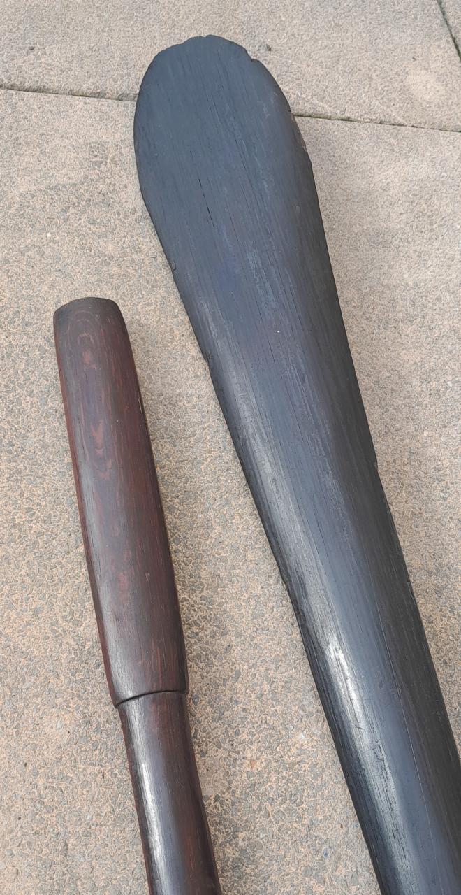 The were long time kept in an ethnographie art gallery but Just said to be Oceanian, coming from Pacific islands. Then another house sold them as Tolai clubs, New Britain Island origin . The bigger one looks like , the second ? I will post better pics when I get them. Kind regards |