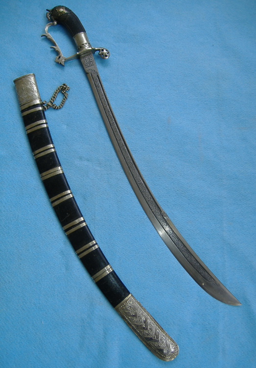Regarding this one of mine, I see similarities to the bronze handled BB above, although the lines at the ricasso and of the azimat as well as the hand guard, clearly has been done in a simpler, more hurried style. As Wilhelm kindly pointed out, it looks somehow more industrially produced. As you can see, it is currently missing it's pommel-wingnut, so I guess I'm in the market for one of those?