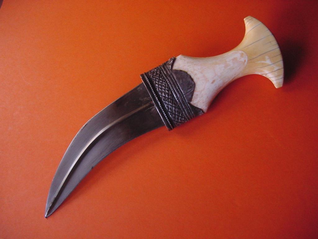 Salaams archer Yes this is one of the styles of hilt seen in Oman. These days they are copied onto synthetic hilts as well see pictures below and at http://www.vikingsword.com/vb/showth...light=Baatinah Yours looks like Elephant and old going by the cracks and patina .. it seems.