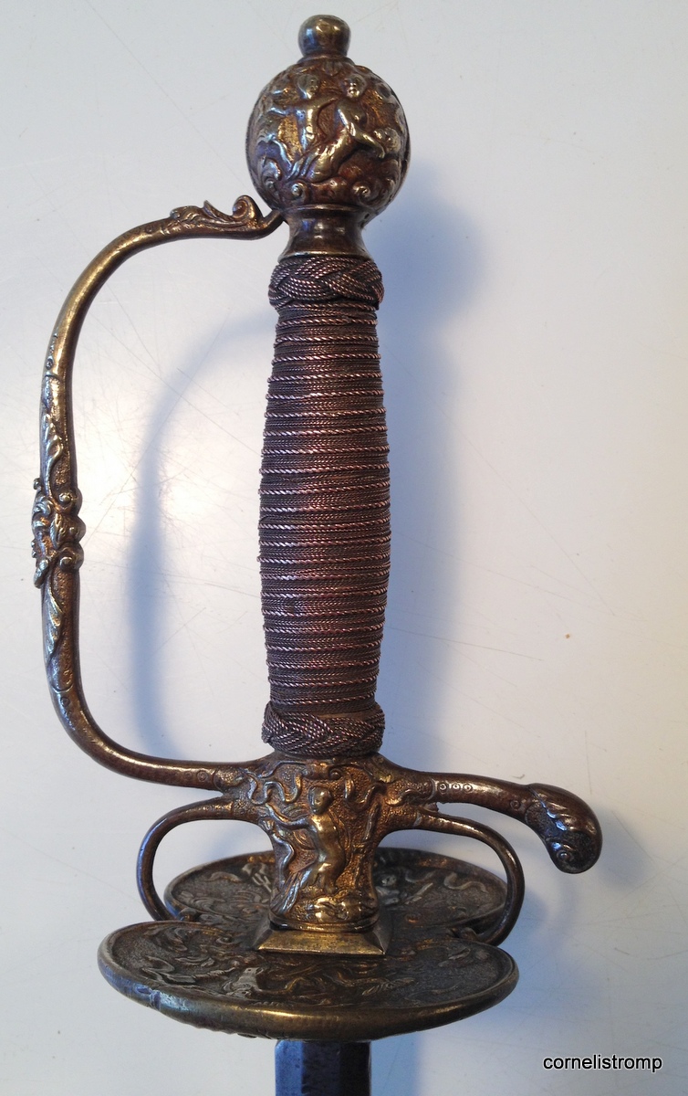 Can somebody please help me identify the smallsword in the photos attached? The hilt appears to be of cast, carved & gilded silver and the blade is partly engraved and gilded with the inscription "Concordia Res Parvae Crescunt" on both sides. The bladesmith mark is also present.