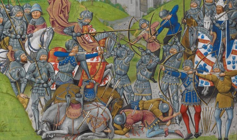 Below the English are routed at Formigny but at Sluys the rainstorm of English arrows destroyed the French crammed on board ships.