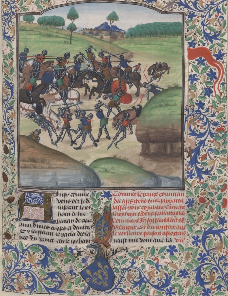 As in my factional perspective i like to bring to light the battle of Aljubarrota (1385), where it is established by a well recognized period chroniclar that the Spaniards came to the game with over a dozen trons but from which unfortunately there are no graphic evidence, we can depart from an ilumination of this battle contained in Chronique d'Angleterre (1401-1500) by Jean Wavrin, kept at the British Library and also the Siege of Lisbon (1384) by Jean Froissart (1337-1405), followed by a few picturesque illustrations from the said Chronique, as an atempt to stay in line with this thread topic.