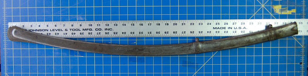 It would be a particularly vicious practice to gut enemies using a blunt scabbard! Perhaps the story about using the notches to pick up horse reins is true after all? Or maybe French soldiers used notches on scabbards to recognize their swords amongst others? I have a French Napoleonic sabre cavalerie legere modele AN XI which has a notched M or W on the scabbard drag.
