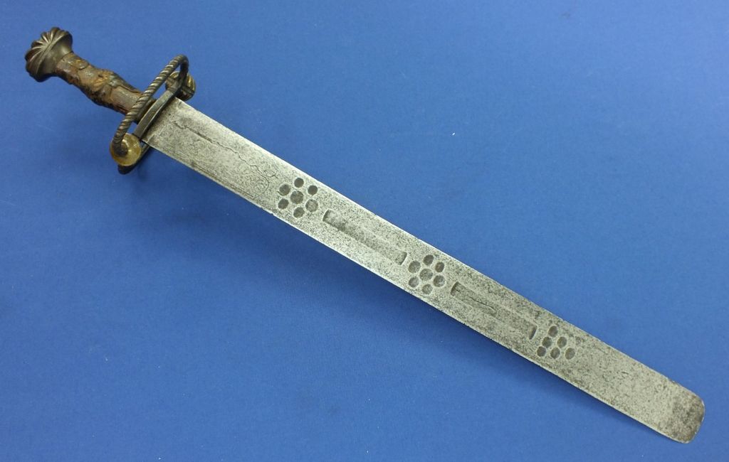 Maybe a cut down version of this type of blade. (Italian, late XVth - early XVIth century. The grip is a replacement, and the fittings may or may not be original.)
