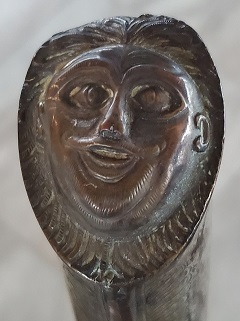 The faces are similar to those on some pedang suduk (attached photos) from Java, and it is fascinating that these, the noted Burmese features and Japanese character are melded together in a sword with klewang type blade.