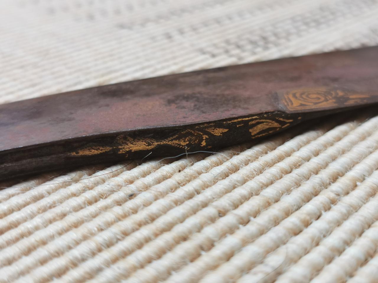- the first third back end of the blade (the straight part) was originallaly decorated with koftgari only a few remnants of gold remain as wel as a 3D flower. This was probably intended to show of some koftgari even while the saber was fitted inside the scabbard.