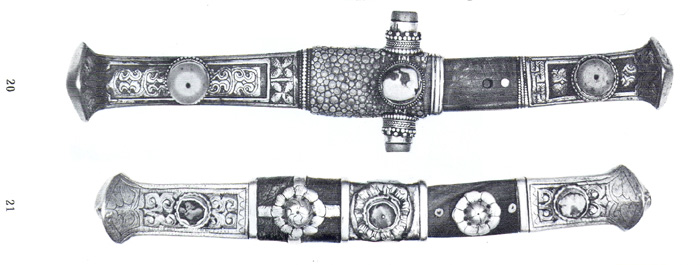 why do You suppose the dagger might be from Turkmenistan or Uzbekistan? IMO the works on silver and the use of coral and turquoise are more in Tibet style. I send the pics of Herman Historica booklet. The two daggers seems similar to my one. Regards Paolo |