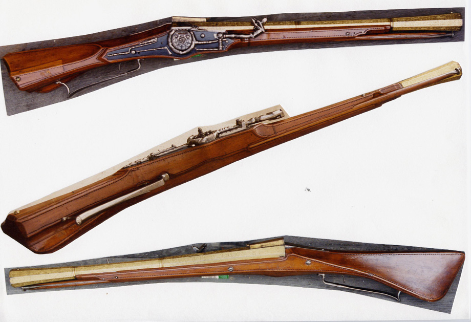 The three guns with stitch pattern stocks in the Hofburg (Hof- und Leibrüstkammer) Vienna.