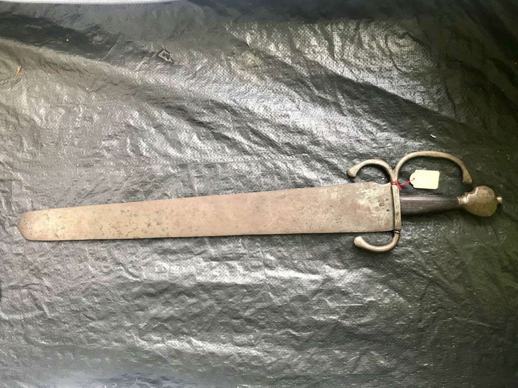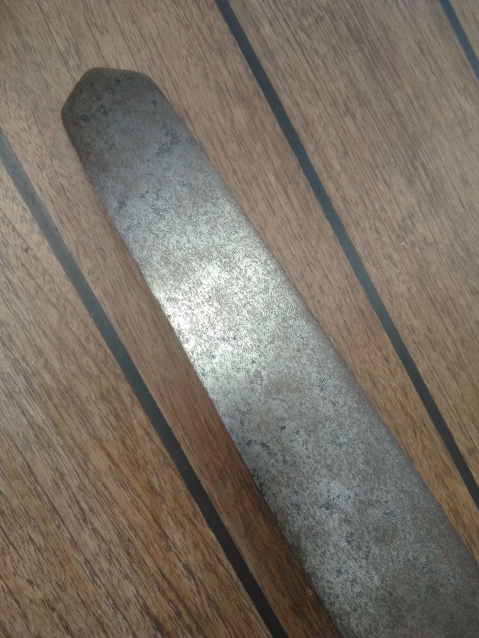 The leather-covered guard is old, and the wide, flat, and sharp blade as you said , which shows clearly some age and is made of quality steel, reminds me of my 16th-century Italian sword/storta. See my previous post: Strange blade on Italian(?) old sword Is it a short sword or long sword? The hilt, even though it looks like a Viking/Norman or Celtic type, reminds me of certain long cinquedeas from the same period, 1500-1600. Clearly, the leaf-shaped blade is anachronistic. Perhaps it was a special order with a beautiful medieval pommel. What is the sword's length and weight, by the way? Kind regards |