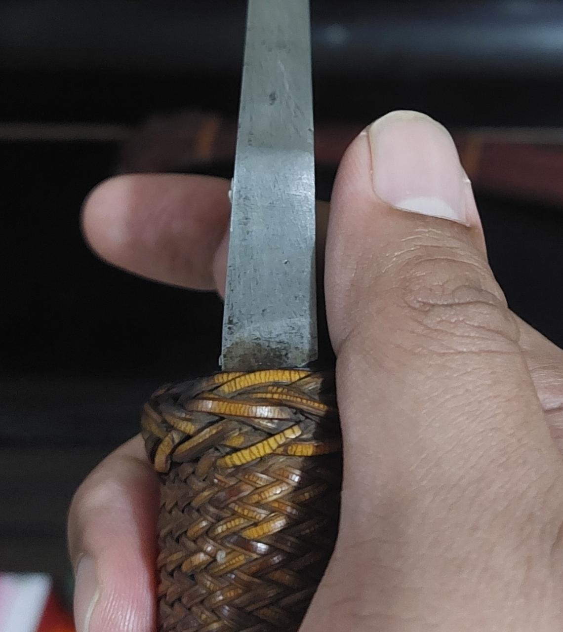 I believe this antique was likely never used before. Perfect spine and edge alignment, no edge chips, no blade cracks, everything intact except for a scabbard foot accessory and a hairline crack at the back of the hilt (due to wood shrinkage I'm guessing). Last edited by xasterix; 31st December 2023 at 09:27 AM. |