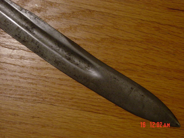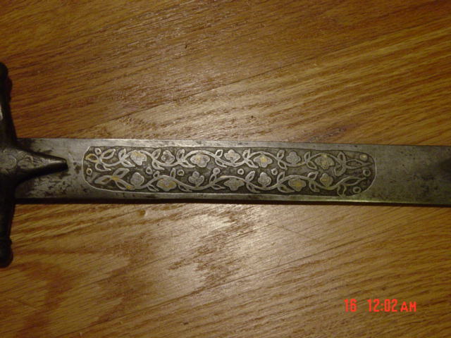 Would the engraving on the blade be somehow an usual design? Could this piece have some age? The blade is 67 cms.long and 4 cms. wide at forte. Still bright in some areas, all single edged, quite sharp, with bevel ( this the term? ). Coments would be so much welcome. Thanks in advance fernando Last edited by fernando; 10th September 2007 at 01:15 AM. |