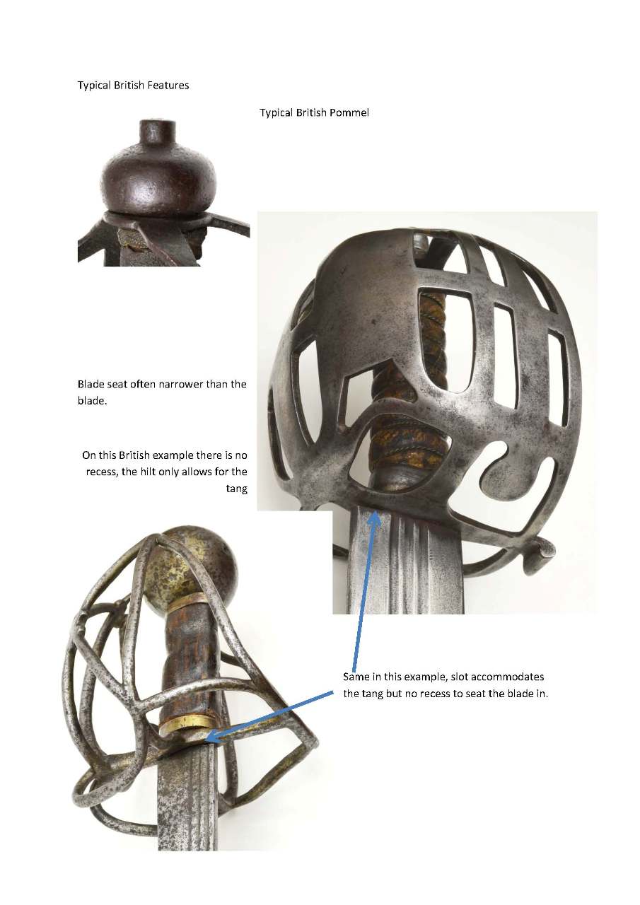 My first love has always been the basket hilted sword. I do not post very often as I have little spare time working hard to pay for my collecting habit. However, between Jim McDougall and my husband’s insistence I thought I should make more of an effort. I would like to start a thread devoted to Basket hilted swords. Note I have not said Scottish as there is a fine line between the Scottish and British basket, often it is difficult to say with any certainly which is which. I have attempted to start a thread on this subject ton other forums however there has been little interest, so here goes. I currently have 20 Basket hilted swords in my ranging in age from mid 16th century to the end of the reign of Queen Victoria, which is supposed to be my cut off date. Reference material, from my library: SWORDS AND SWORD MAKERS OF ENGLAND AND SCOTLAND, BEZDEK, Richard H. Not bad general reference. SCOTTISH WEAPONS & FORTIFICATIONS 1100-1800, CALDWELL, David H. (again general) HIGHLAND DRESS, ARMS AND ORNAMENT, CAMPBELL, Lord Archibald SCOTTISH SWORDS FROM THE BATTLEFIELD AT CULLODEN, CAMPBELL, Lord Archibald Scottish Arms and Armour (Shire Collections) (Paperback) by Fergus Cannan (more a history book) SWORDS FOR THE HIGHLAND REGIMENTS 1757 – 1784, DARLING, Anthony D. WEAPONS OF THE HIGHLAND REGIMENTS Historical Arms Series No.33, DARLING, Anthony D. Ancient scottish Weapons a series of ddrawings by the late james drummond THE SCOTTISH DIRK Historical Arms Series No 26 Paperback Second Printing 1993 Museum Restoration Service, FORMAN, James D. BRITISH BASKET-HILTED SWORDS: A TYPOLOGY OF BASKET-TYPE SWORD HILTS, MAZANSKY (C.) (Probably the best reference book to come on the market). BATTLE WEAPONS OF THE AMERICAN REVOLUTION, NEUMANN, George G. (excellent general reference to early British Swords) EUROPEAN WEAPONS AND ARMOUR From the Renaissance to the Industrial Revolution. OAKESHOTT, Ewart SCOTTISH SWORDS AND DIRKS an illustrated reference guide to Scottish Edged Weapons, WALLACE, John SCOTTISH ARMS MAKERS. A biographical dictionary of makers of firearms, edged weapons and armour working in Scotland from the 15th Century to 1870, WHITELAW, Charles E. Scottish Sword 1600-1945: An Illustrated History (Paperback), WITHERS, Harvey J.S. (great pictures) THE SWORDS AND THE SORROWS. An exhibition to commemorate the Jacobite rising of 1745 and the battle of Culloden 1746. If any one can recommend anything not on this list let us know. A friend of ours the Baron of Earlshall is writing what will be the definitive work on early basket hilted swords. It will be several large volumes and stop at the end of the 1700 hundreds (18th Century). Now for a basket hilt to start this thread: Date Circa 1540 - 1560 (16th-17th Century) Nationality British Over Length Overall 36 ¼ “(87.6 cm) Blade length blade 32” (81.6 cm) Hilt widest point The hilt is 6 ¼ “(16 cm). Description BASKET HILT British backsword. Three segments of the guard (each comprised of three vertical bars) are linked by two small junction plates. The upper tips insert into the large, hollow Spherical pommel. The holes into which they insert have been enlarged to allow restoration of the grip and tang button. The grip is a replacement as is the tang. The thin single edged blade is contemporary with the hilt. General Remarks This sword was also used by Scots in the English Civil War. A similar example was excavated on the site of Basing House which was destroyed in 1645 and another recovered from under the Mary Rose in 1545. The Baron of Earshall has requested pictures of this sword for his book and believes it to be English c.1540-50. |