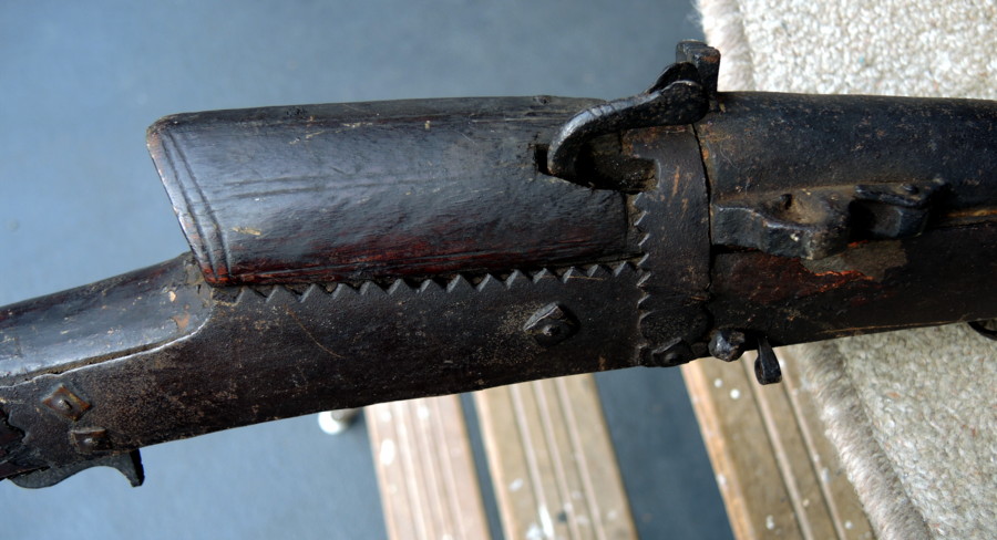 Hi Stu. Thanks so much for the pics !!! First time I've ever seen the breech area on these barrels. Ok. I see the stud for the pin that holds the breach area of the barrel to the stock. That makes sense. Yes, there does not appear to be a breech plug, as we usually refer to one. Looks like some type of iron is added to the breech end and then hammer or forge welded closed. Very unusual. I gu was this was done to eliminate the need for threads. But it looks like the hole in the breech is larger than the bore diameter, which would confirm my theory of the powder chamber. What do you think? Nice to see the brass decoration on the barrel after cleaning. What a surprise.