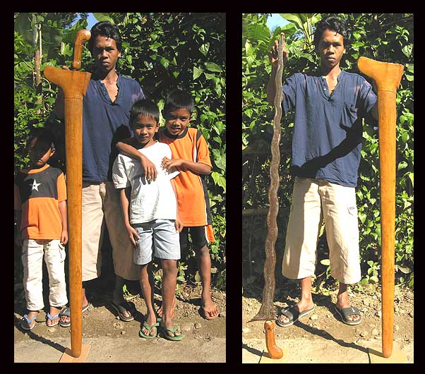 including the interesting internet version of 'swish of the kris' on the moro insurrection of the early 1900's http://www.bakbakan.com/swishkb.html it was in there that i read the bit about the report of the marine being cut in two. (i think that one was a barong tho) i am certainly aware of them (kris, barong, etc.) having been capable of cutting from the shoulder down thru deep in the chest of a victim. the filipino's made some of the best steel weapons outside of europe in a time when they were being phased out in europe and thus were probably even better. it is interesting to note the variations in spelling of the different terms, again probably because of phonetic spelling. (campilane = kampilan, etc.) |