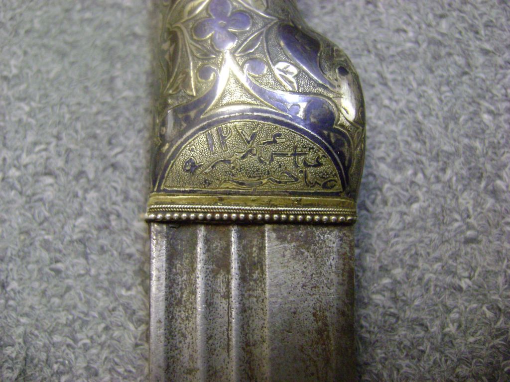 Very nice shashka, the handle and the scabard have some really nice workmanship. As far as the writings, the date is 1276 , right now is 1432, which comes to 156 lunar years, which is 150 solar years which put the age of this at 1861. The writing reads عباس میر (Abbas Mir) and right under عباس (Abbas) it reads صاحب (Saaheb), as said before, meaning owner Abbaa Mir.