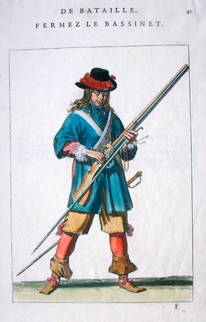 Some period artwork depicting musketeers, from top: - Danish musketeers in array for exercise, ca. 1660 - a musketeer, by Johan Boxel, ca. 1650 - a French musketeer, ca. 1660 - a date confirmed by the rounded form of the buttstock of his matchlock musket - four colored engravings from the exercise manual by Estienne Mignon, 1674 m Last edited by Matchlock; 21st March 2014 at 05:43 PM. |