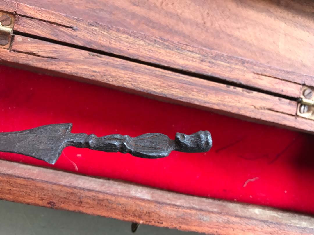 Thank you for your feedback. I'll continue with the remainder of the collection. Again, many things have been said about this type of keris but virtually none of these statements can be supporten by facts. I agree wit Alan's observation about the recylced blades. These and maybe more were added to the collection to show variety. It doesn't say anything about the extent these specific keris were revered and maybe also nothing about their age. In this box there is at least one which I consider to be recent. ( The one with the detailed hermit/putut is well made but recent.) When the collection boxes are done I'll post a couple of keris in their own 'shrine' boxes as they were collected. Last edited by Kulino; 27th August 2017 at 12:30 PM. |
