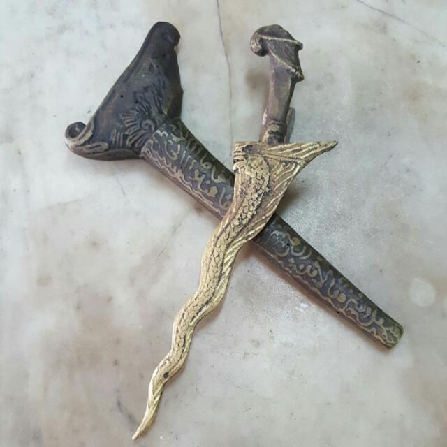 I have some questions about small, talismanic kerisses made of brass that I've seen in Indonesia, specifically Java. They're generally quite small compared to the conventional kris made of steel and nickelous iron, maybe about a hand length, and seem to be made of brass or a similar coloured material. Some are said/believed to be old or pusaka items, while others are believed to be made and bought or circulated in the modern era. The old or pusaka ones, like conventional kerisses, are often obtained by supernatural means or circumstances, and those who have them don't seem to distinguish between the kind of power that these brass ones possess versus talismanic tosan aji. I haven't been able to find much information about these brass talismans. Some questions: 1) When did these talismans start appearing? 2) Do these items have any place, or any attention or acknowledgment paid to them, among those institutions and people that are deemed to be authorities in keris and tosan aji? I had more questions prior to writing this but I've had a mind blank! Interested to hear your thoughts. EDIT: I should add that the ones I'm thinking of aren't the single-piece brass ones that are carved or shaped to resemble a keris. I refer to ones where there is a brass blade (either straight or with luks), and both the wilah and what would be the gonjo is one piece, with greneng carved in. All that I've come across have wooden sheaths and handles. |