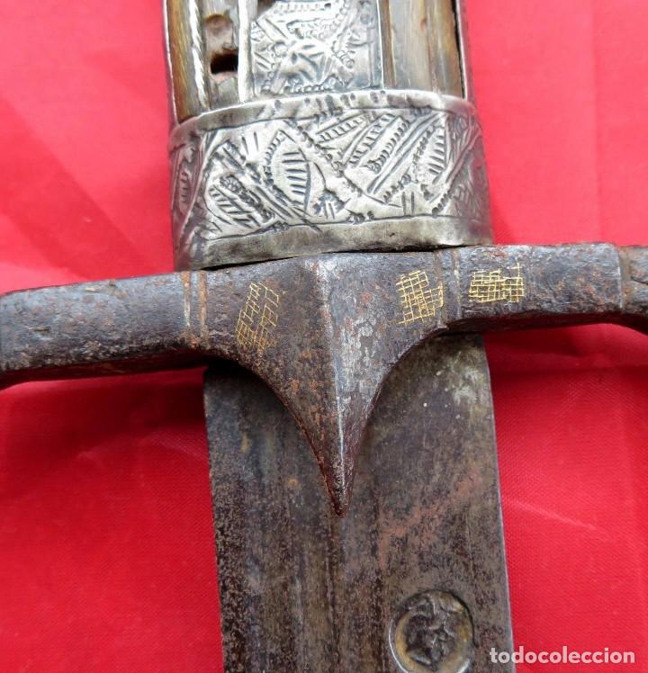 Marks (stamps) are a vital asset; they often open the doors to crack enigmas. While inscriptions, for as important as they are for the item's record, may fall into 'generic' religious statements, smith (or arsenal) marks may drive you into the actual origin of the piece. ... Just saying .