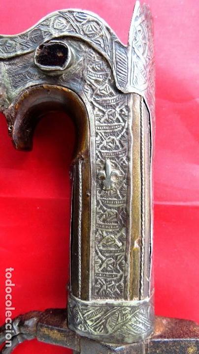 Its not a weapon I have ever seen in Oman. This does however, satisfy the equation of being Algerian . The https://www.rijksmuseum.nl/en/search...t=Objects&ii=0 I Couldn't shrink it in size to fit EAA parameters... but you can see it on the web..The example has a part tortoiseshell hilt although it may well be of the same family . The provenance is in my opinion Algerian... surely it has to be off the coast as it is every inch a corsairs weapon. However having said that I have not got the Hales or Elgood reference work before me.. ~ Regarding coins on Omani or Zanzibari items I take it on those with Ivory hilts and gold work probably added by goldsmiths on the Zanj or even in Stonetown… These are not coins but circular shapes along with leaf shaped designs from the African comb making fraternity; see below.. I doubt if there is such an animal as a Zanzibari Nimcha and to my eye Butin got as close as any expert in his three plates which I placed at an earlier thread but I believe his detail still accurate and on his 3 plates there is no mention of Zanzibar...therefor please see http://www.vikingsword.com/vb/showthread.php?t=23387 post 12 and viewing plate XXX 993 994 995 … The project Nimcha is seen as one of those .It may even be on Plate XXX11 991... Shown as an other oriental design. I must confess I have never seen Bukharen work in Oman...although in the Yemen, yes, for good historical reasons and known links… Further I have no recollection of enameling work here .. Do you mean Yemen also? Last edited by Ibrahiim al Balooshi; 24th April 2019 at 01:40 PM. |