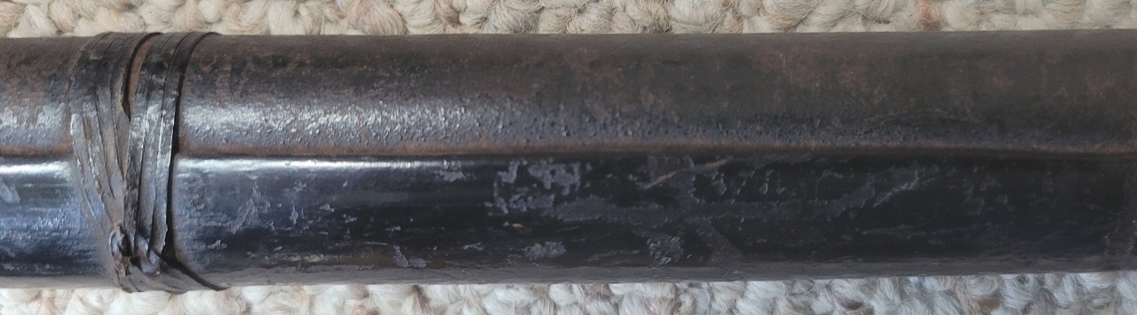 I don’t understand firearms at all, but I have seen such fastening with rattan strips on the scabbard of Dayak swords.