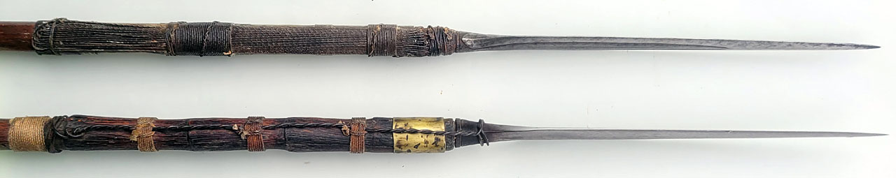 Actually, I wish that I had remembered this earlier;Rsword sold an interesting set of Moro spearheads that came in a wooden box, specifically carved for them.This might reinforce(just a little), my theory of Moro spearheads being kept apart from the hafts unless needed.