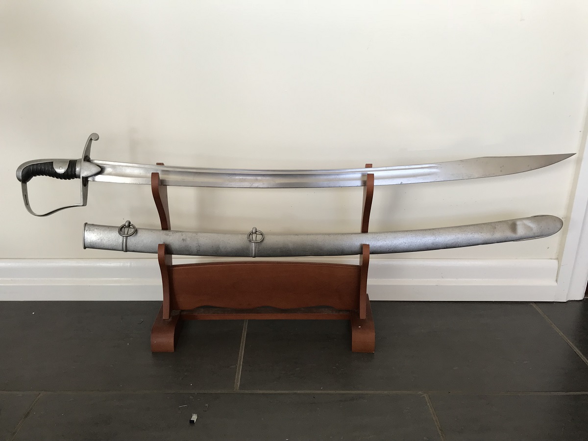 About a hundred to one hundred, fifty grams heavier than the 1796 Pattern light cavalry troopers, but lighter by the same amount to the French An XI light cavalry sabre and nearly three hundred grams lighter than the AN XIII Sabre of the line. |