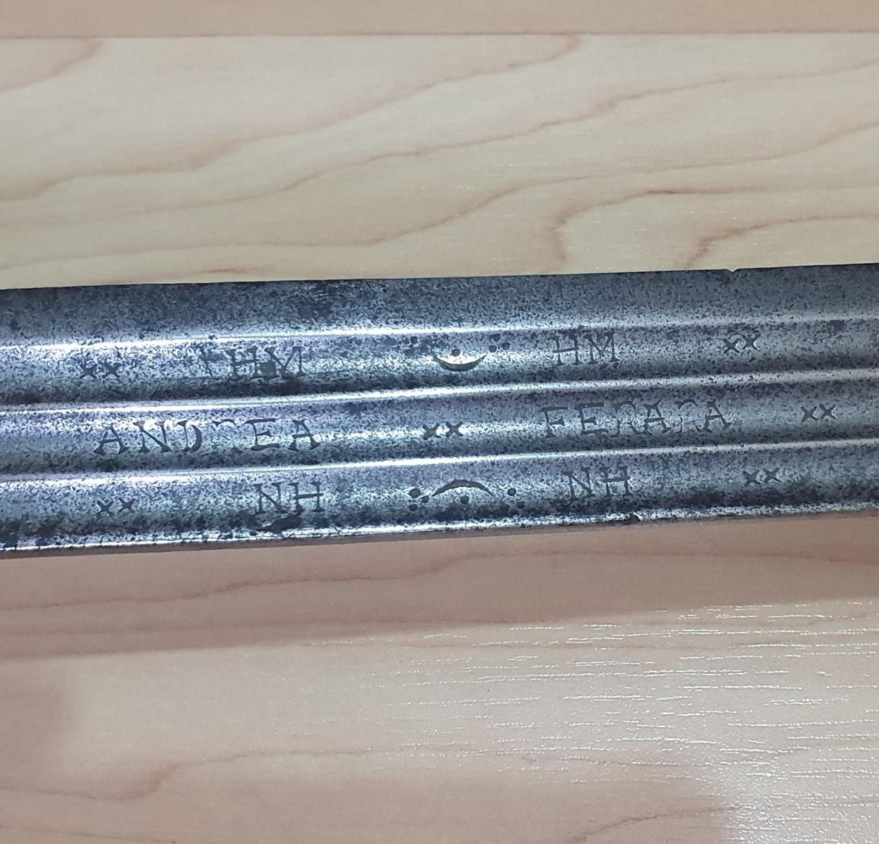The blade is particularly exciting as this dramatic fullering is evident on the finer examples of Solingen blades for the British market. Contrary to popular belief, the ANDREA FERARA blades were not confined to the Scottish market.