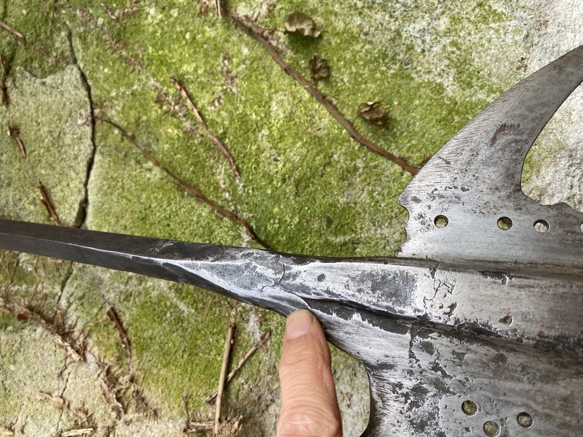 It’s roughly forged that’s for sure but these things sometimes were. At least it doesn’t seem to have been moulded which is a good sign. Sometimes halberds were roughly produced in large numbers and then stored in armouries in case of future invasions. This could be such an example. An earlier post in this forum showed a halberd with an armoury mark on the pole from Switzerland. Other promising signs of originals are sharp tips on the spike and sharpened axe blade. If the halberd was made for Victorian decoration it would probably not have been sharpened for business.