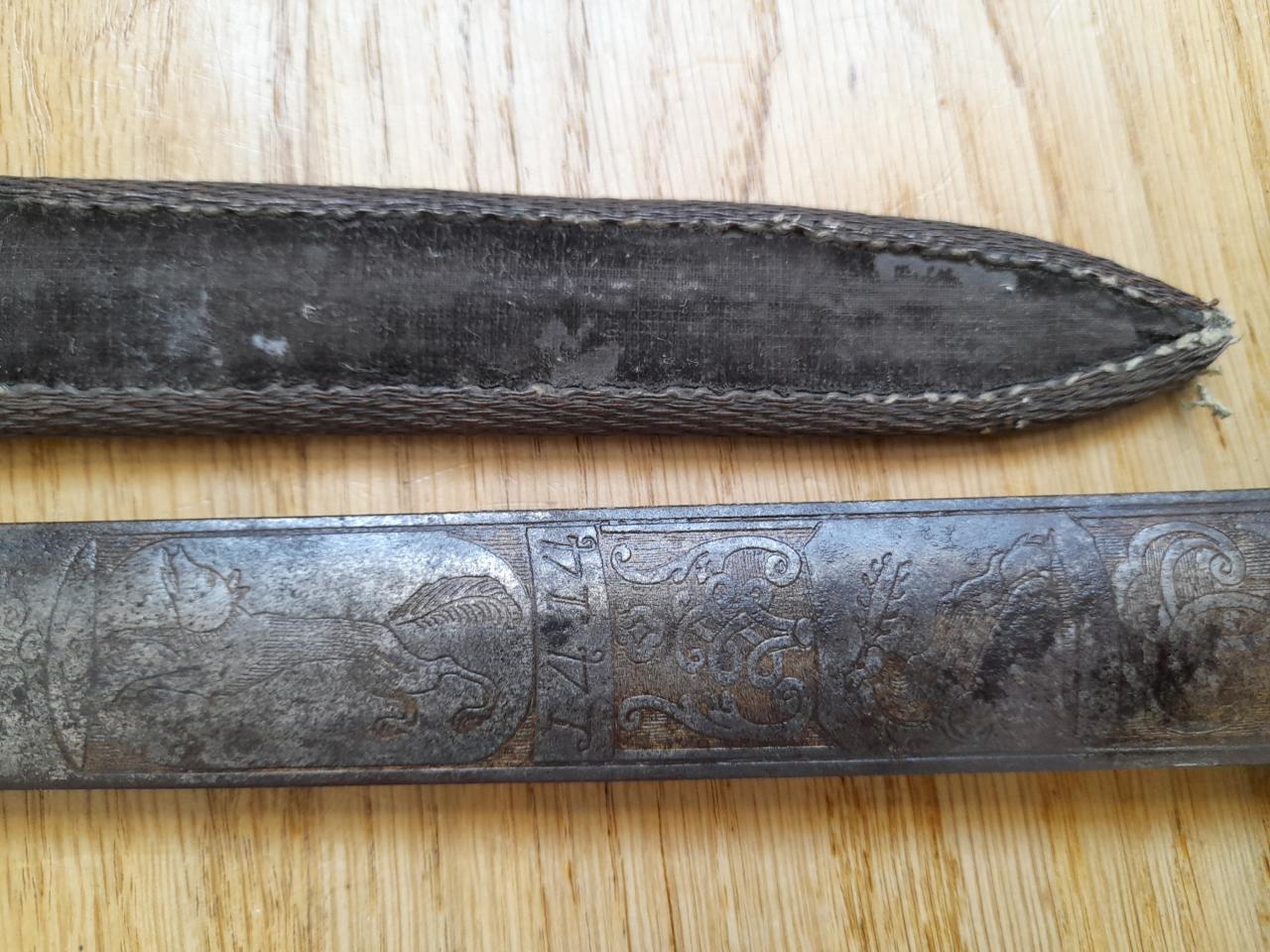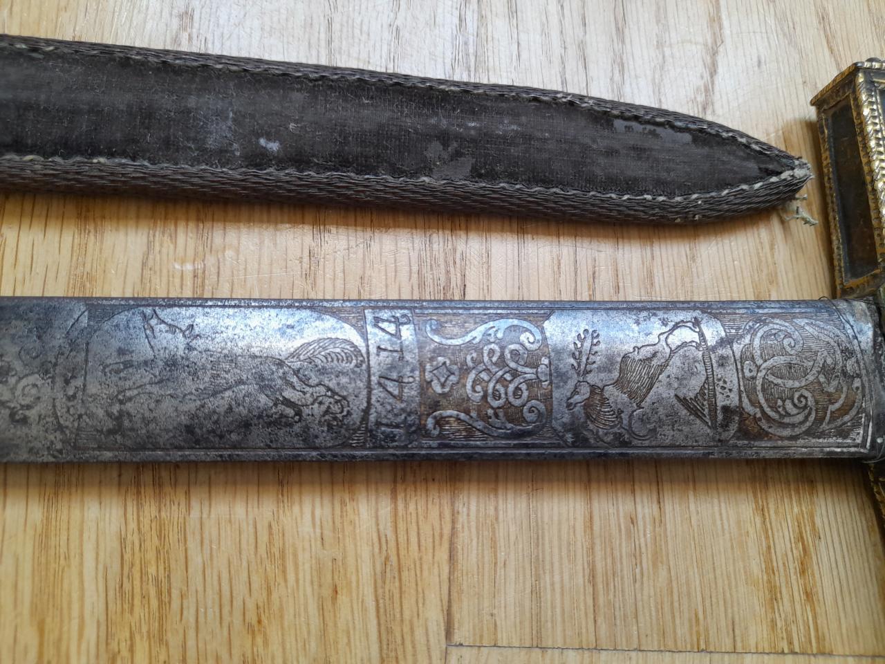 Very cool! The decorative engraving imagery/style on the blade resembles a short sword I had posted here recently and what I was told by experts on this site that was probably done in France (possibly on a German-made blade). I'm no expert myself but your images reminded me of the one I have, so figured I'd mention it. I could be completely wrong and stand to be corrected!