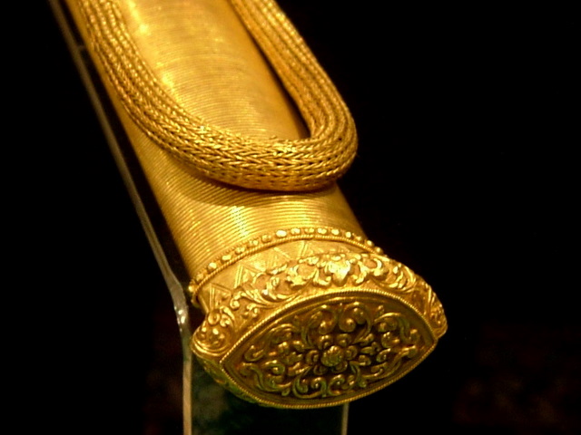 I just remembered - a similarly weaved toli-toli gold necklace from India about 3/4 the length of the toli-toli on the Riau-Lingga keris, with a modestly gemmed broach at the front was on sale in an antique shop in Singapore. I reckon the weaving was the exact same technique employed on the Riau-Lingga keris. Cost of the necklace - SGD15k.