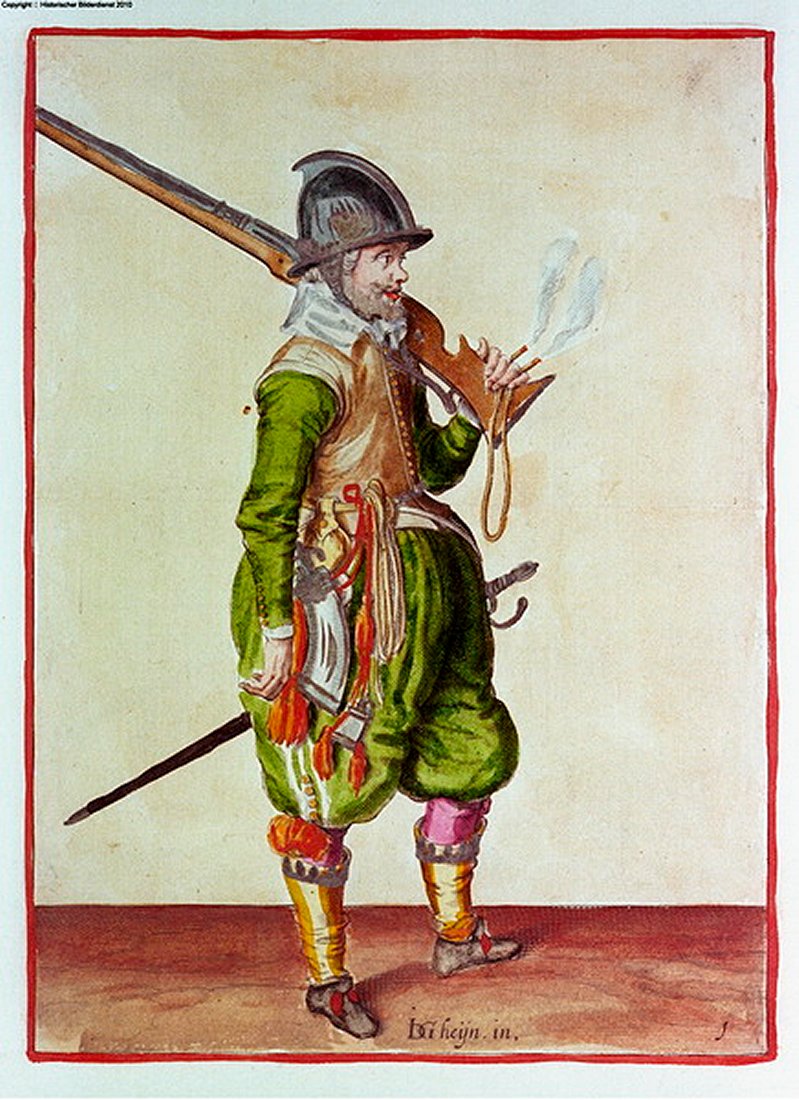 This fact can be verified by many pieces of the fine arts. In some cases it doubtlessly prevented the artisan from facing the dilemma that he would have to depict the lock mechanism of a gun. That, in my opinion, is exactly the reason why many guns, up till the end of the 18th century, are represented from the 'left' side, opposite of where normall the lock would be - simply because the respective artisan avoided being technically exact.