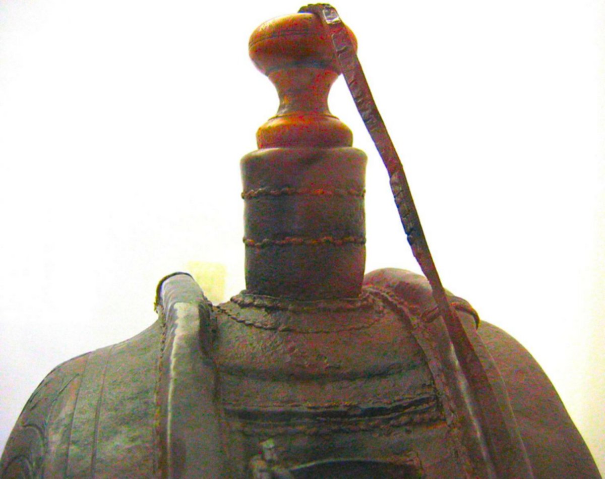 The first is of Nuremberg make and of a type that was ordered in large numbers by many armories, among them the Styrian Armory in Graz, in 1577-78. The wooden body is covered with velvet which was either black, blue or green, while the iron mounts contrasted with their tinned surfaces.