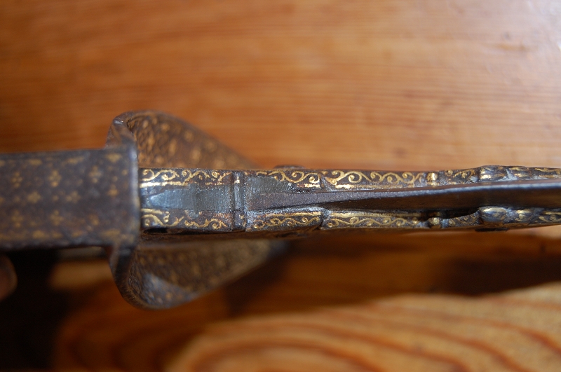 "They are so curious in the blades, that they hold the European broad swords in great contempte, especially the common-sale ones, that are sent out by our ship. When the Derby, captain Anfell, was so scandalously taken by a few of Angria's grabs (Angria was admiral of Marathas's navy), whose marines are exactly the same as the Morattoes, and often some of their subjects; there fell into Angria's hands, among a great quantity of other valuable military stores, some chests of sword blades, on examing of wich Angria said, that the English swords were onli sit to cut butter with". From "Voyage to the East India" by J.H.Grose. I know that some European blades were used on the cane-swords. You can see a lot of such items on the court pictures (in profile, shield, tulwar and a cane-sword in the hand). Also when a lot of old European blades were delivered to India it was more easily to use for the common swords the old cheap blades. And such situation there was until second part of 19th (IMHO). |