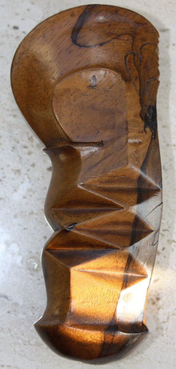 These carvings on one side (five (?) lines). I have seen them only on cecekahan, never bondolan. May be, it is a symbol, bound to a certain group of people, the selected warriors with "Pemating"?