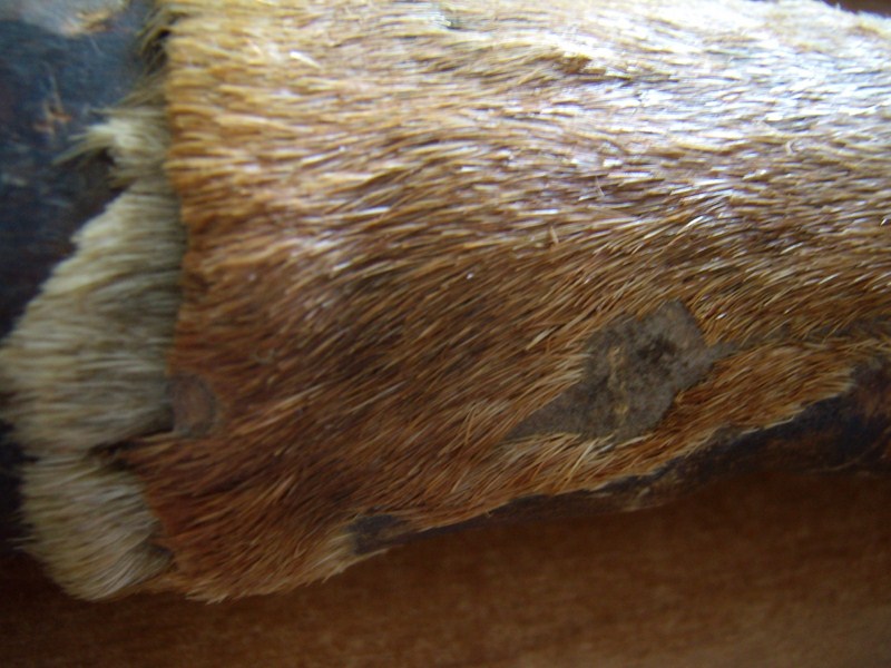 Interesting Matchlock. It does look like the goatskin was being used as barrel bands, or possibly stock repairs (?). The leather bands would not surprise me. But the fact that the goat skin still has hair on it is surprising. Very neat!! Rick.