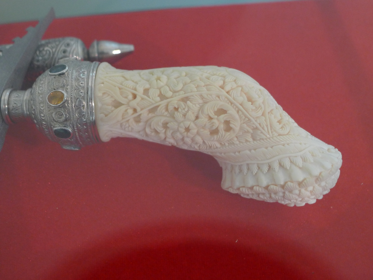 The ivory parts were carved in Bali. Not sure where the gold fittings were made in, but apparently, 3 different types of craftsmen were involved. One for repousse, one for the wire-works, one to set the stones.