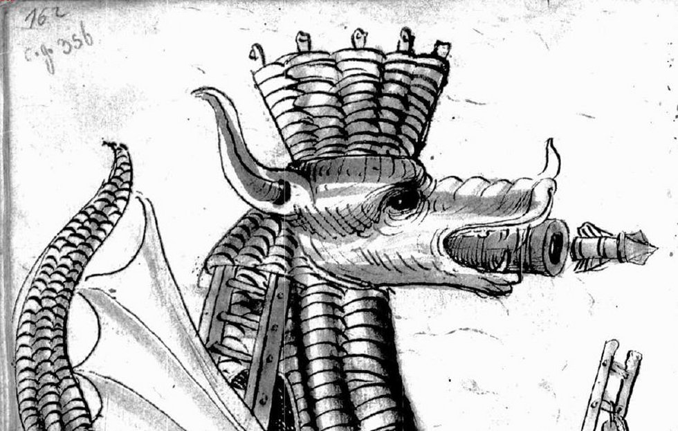 It is taken from the cod. germ. 734, dated to ca. 1460-70, a so-called Büchsenmeisterei-Buch (book on gunnery), preserved in the Bayerische Staatsbibliothek Munich.