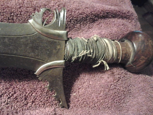 BTW, it should be fairly easy to remove the hilt (and both silver asang-asang) from the blade of the kris once you carefully remove the grip binding which is loose, anyway. This will make working on the blade much easier!