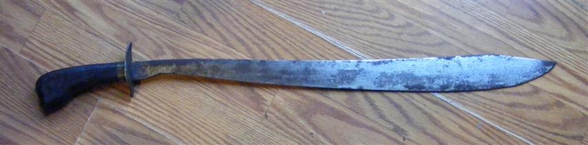 Let me explain my own thoughts. All what I know I've learned at this place, sadly is not much written about South Luzon and Visayan swords. Robert has posted in this thread: http://www.vikingsword.com/vb/showth...ighlight=inaso an interesting sword with a handle which has some similar features (not peened through tang, no ferrule) and our ex-(?)member Bangkaya has written: "It does resemble the inaso (aso=dog) hilt of Bicol, but if it was from Bicol the tang would normally be peened at the end. Bikolano swords also almost always has a ferrule made of metal." and furthermore: "Figural hilts are common with faces of dogs, monkeys, people, etc. and even the dragon hilt varieties found on some modern sansibars. The blade itself is unique, but any sort of blade shape can be made to order by any panday for the original owner". This would explain (when it is a Waray sword) that the blade isn't chiseled ground, a feature normally found by Visayan swords. On the other hand, not all Bicol swords has a peened through tang, look for example here: http://www.vikingsword.com/vb/showth...ighlight=bicol , a other interesting sword from Robert which seemed to be from Bicol also. Regarding the not existent ferrule: so maybe really a Waray sword or a later Bicol sword?