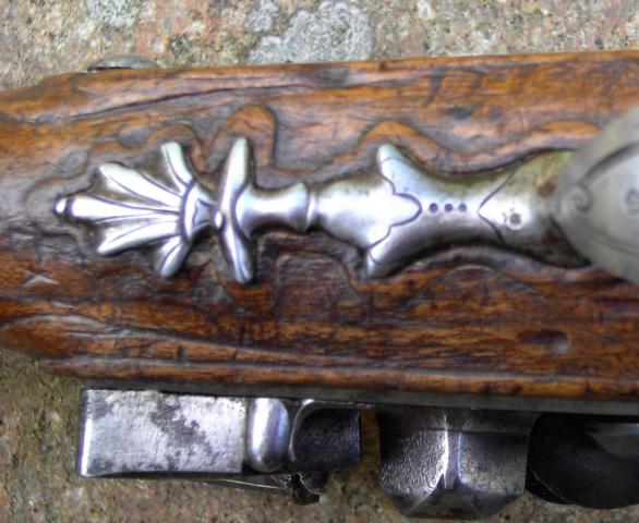 I could use some help identifying the maker of a pair of flintlock pistols. They look French to me. The barrel and lock-plate are marked “Goyel A Brest”, but a lower cased “a” is used on the lock plate. Could this mean Goyel in Brest? I know there can be great variation in the spelling for surnames.