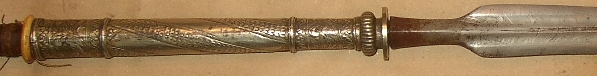 Mmontoro, your Moro spear is wonderful, especially the blade. Deeply etched and I'll bet having a twist core. Ferrule is Moro.