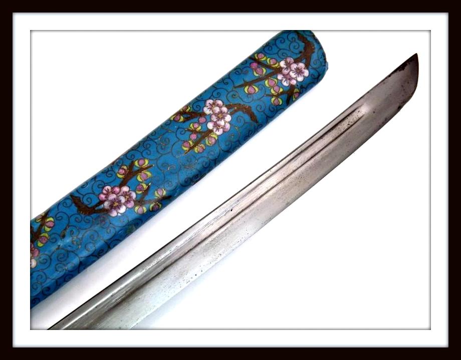 This is an ornate cloisonne dao that at first glance looks like a mediocre Chinese copy of a Japanese sword, made for show.