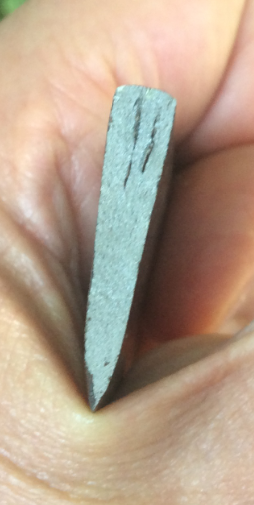 Next, picture of the broken blade: one can see the junky innards on top of the blade.